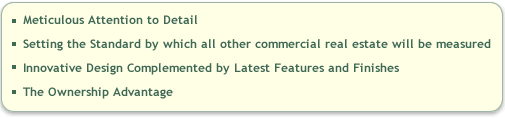 | Since the first project in 1997, Global Group Investment, Inc (GGI) has developed a total of more than 2 million sq. ft of prime office and commercial space with a total asset value of more than $600 million. As a visionary and leader, GGI president, David Ortiz, has his fingerprints on ten significant developments, from class A office space such as Coral Springs Professional Campus, Beacon Square Professional Campus, Boca Raton, and the Professional Center at Lakewood Ranch which all continue the trend for offering class A office ownership opportunity to medical and business professionals, for which GGI has built a strong track record of success. GGI has been involved in retail development with The Shoppes At Heron Lakes, a $25 million, 120,000 sq. ft. center in Coral Springs. Ortiz's latest office development is the Professional Center at Wellington, in Palm Beach County. GGI's newest and most prestigious development, CenterPlace Orlando is a $400 million multi-use development in downtown Orlando is in the planning stage. | |||